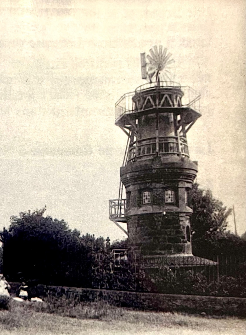 Cette tour, à l’origine surmontée d’une éolienne, pilotait le réseau d’alimentation en eau pour la Villa comprenant : la grande maison, les communs, le potager et le jardin d'agrément . Elle est datée de 1882, date vraisemblable de l'édification de l'ensemble.